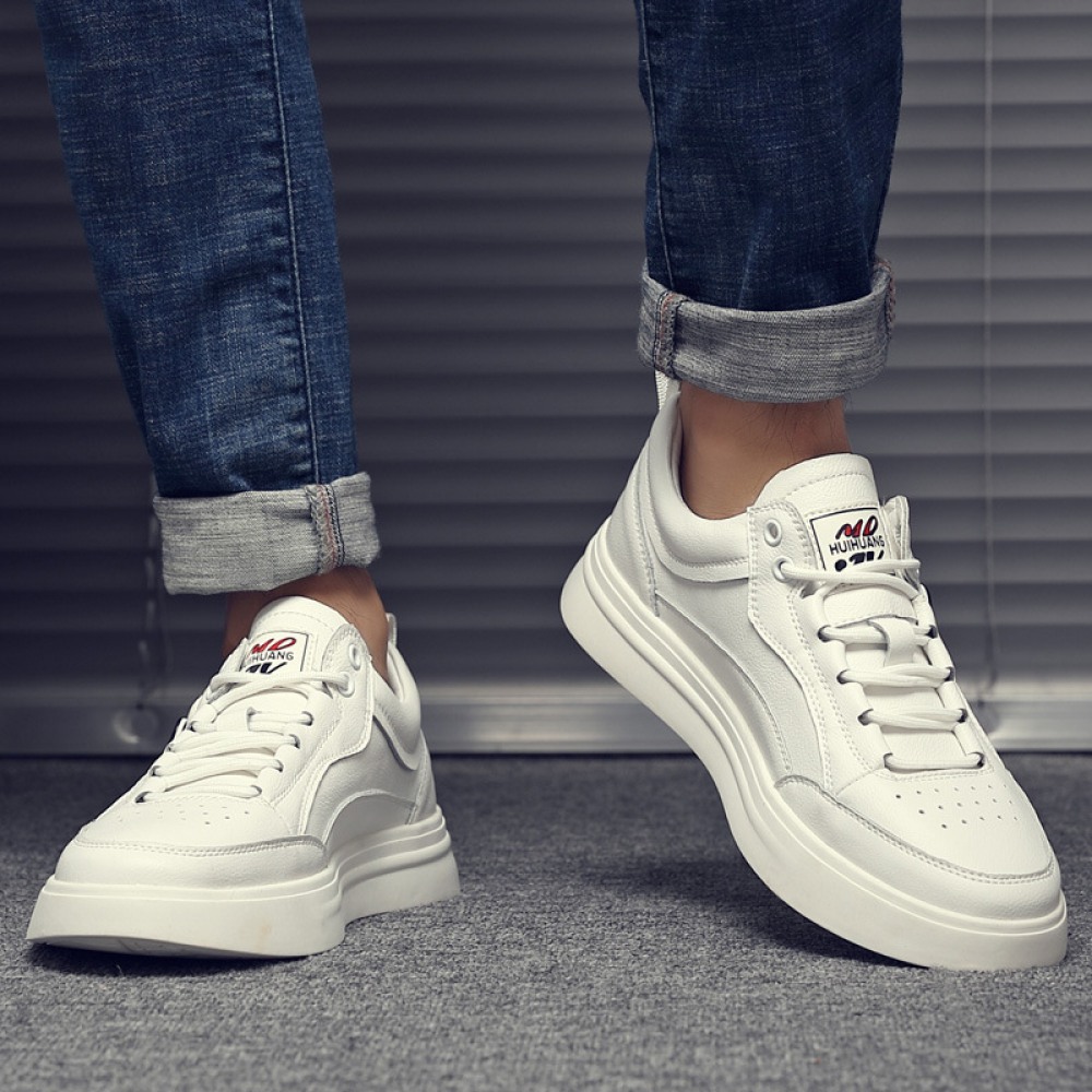 Men's Autumn New Trend Sports Casual Shoes Low-Top Leather Sneakers White