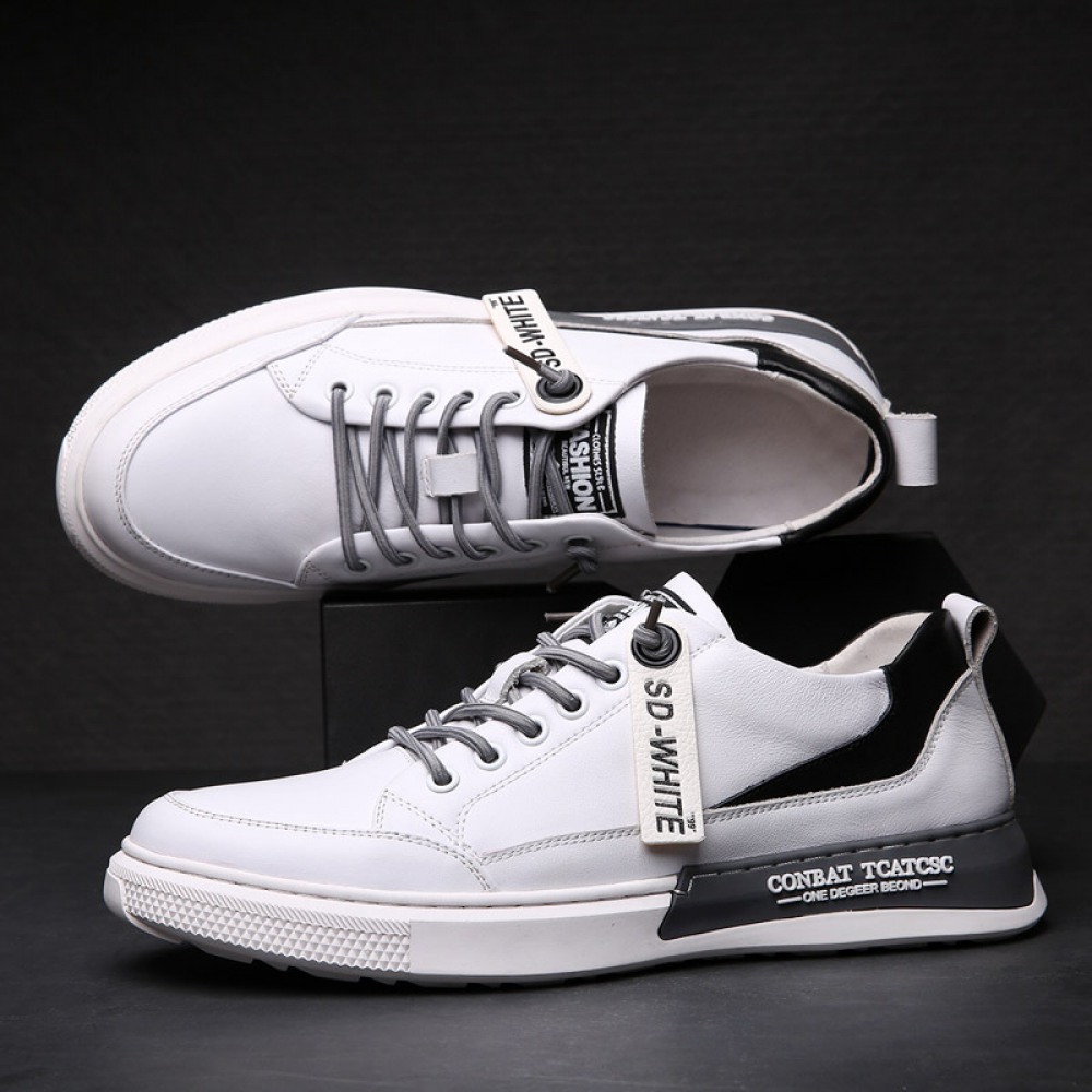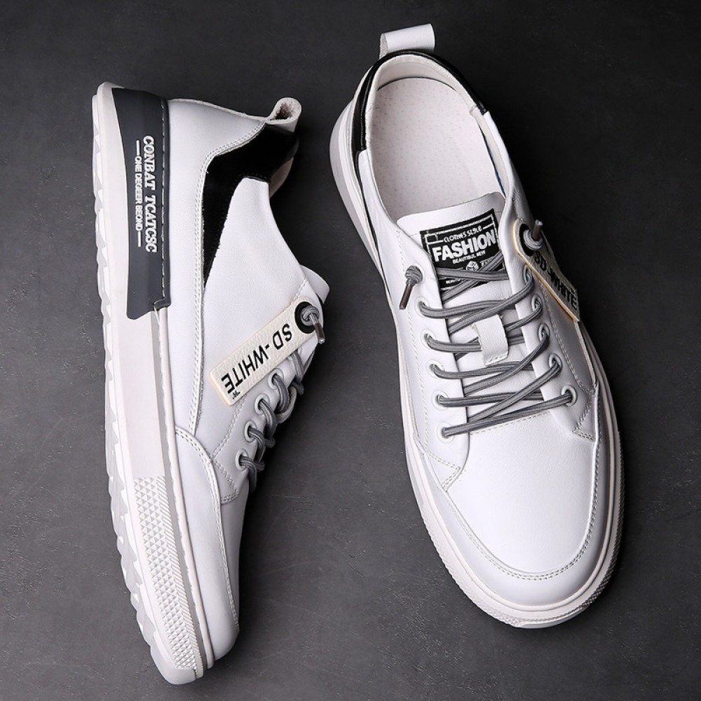 Men's Autumn New Trend Sports Casual Shoes Low-Top Leather Sneakers White