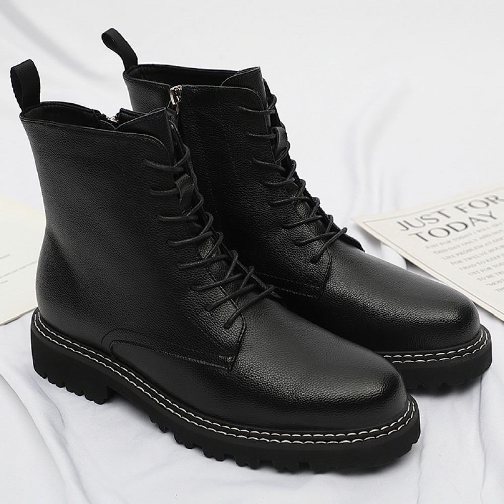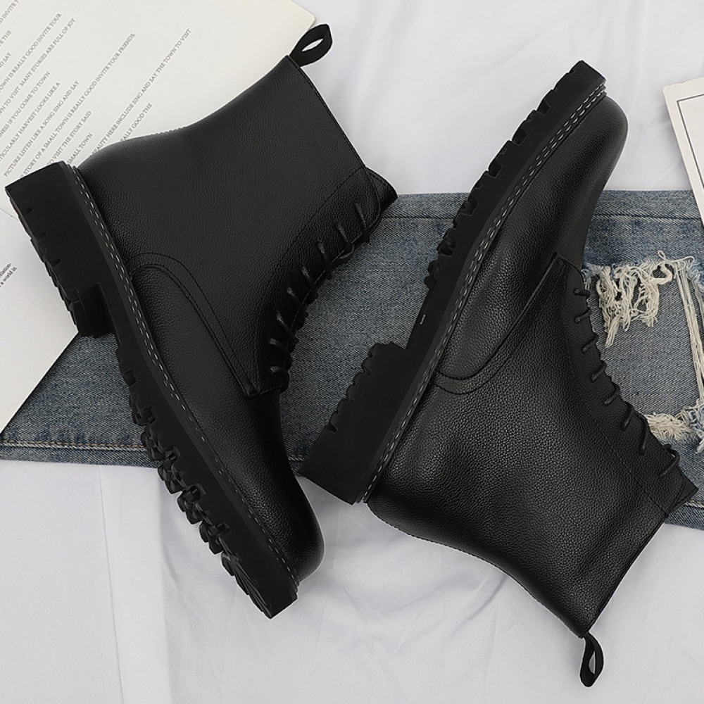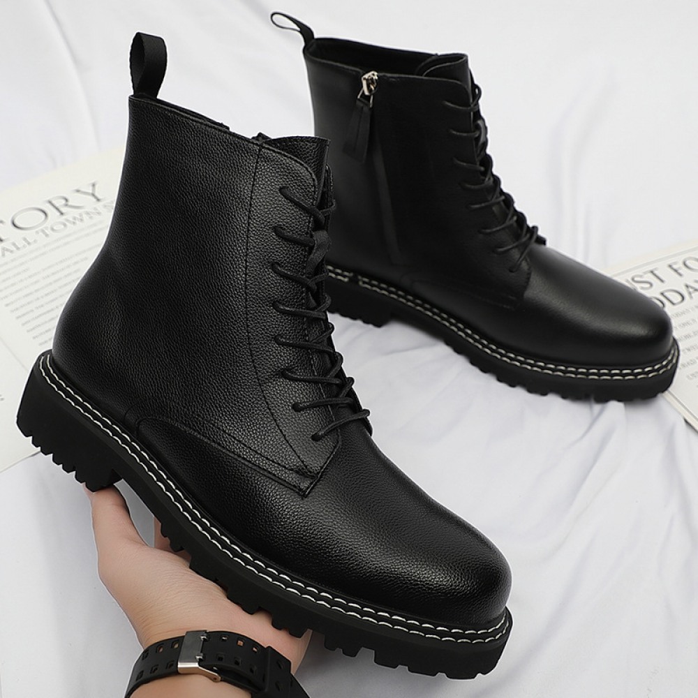 Men's Round Toe British Leather Boots Side Zipper Martin Boots Wear-Resistant Low-Heel Shoes