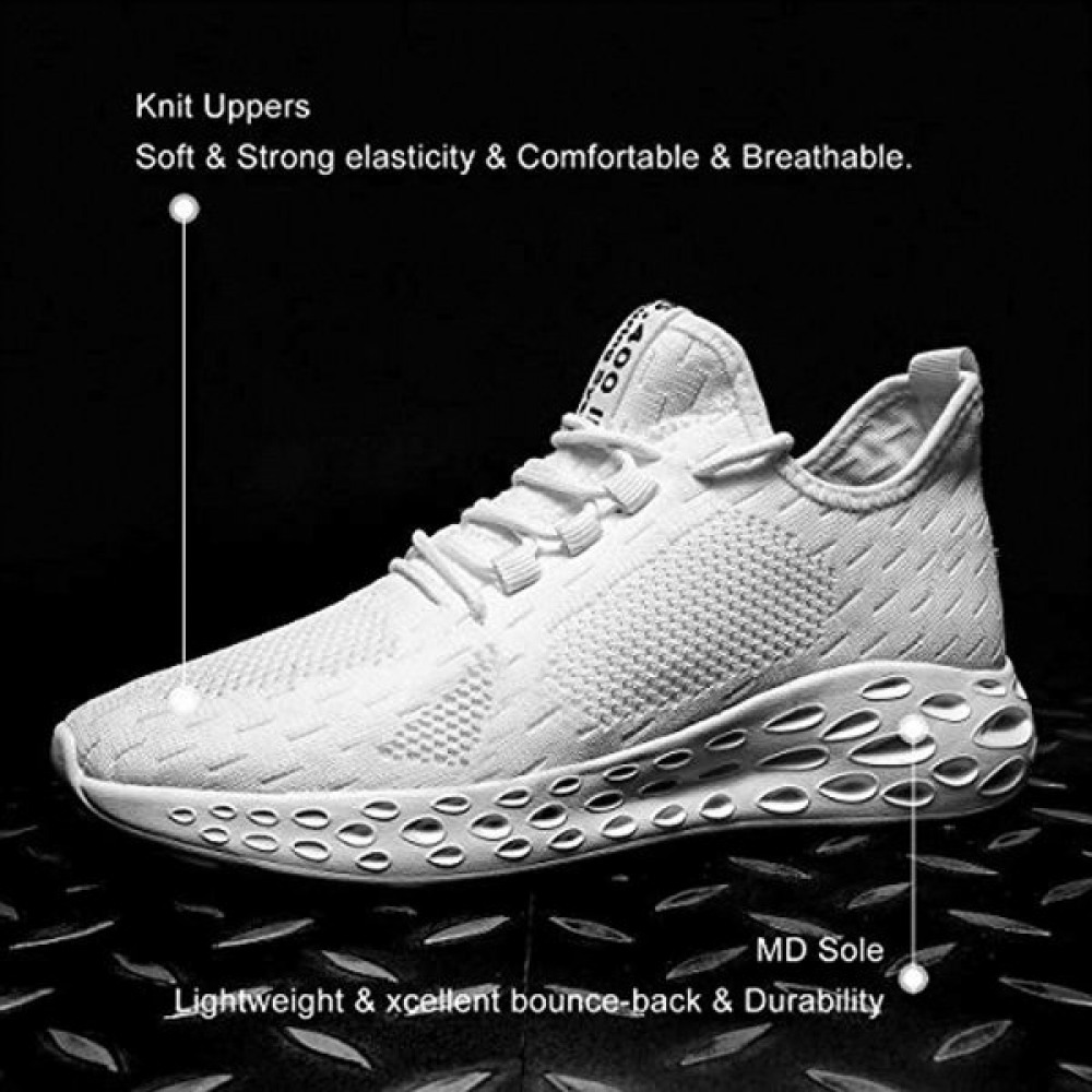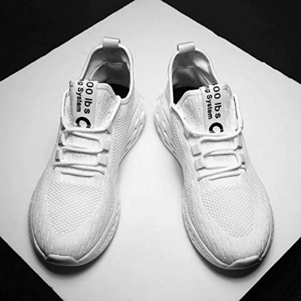 Mens Slip On Walking Shoes Fashion Breathable Mesh Soft Sole Casual Athletic Lightweight Running Shoes White