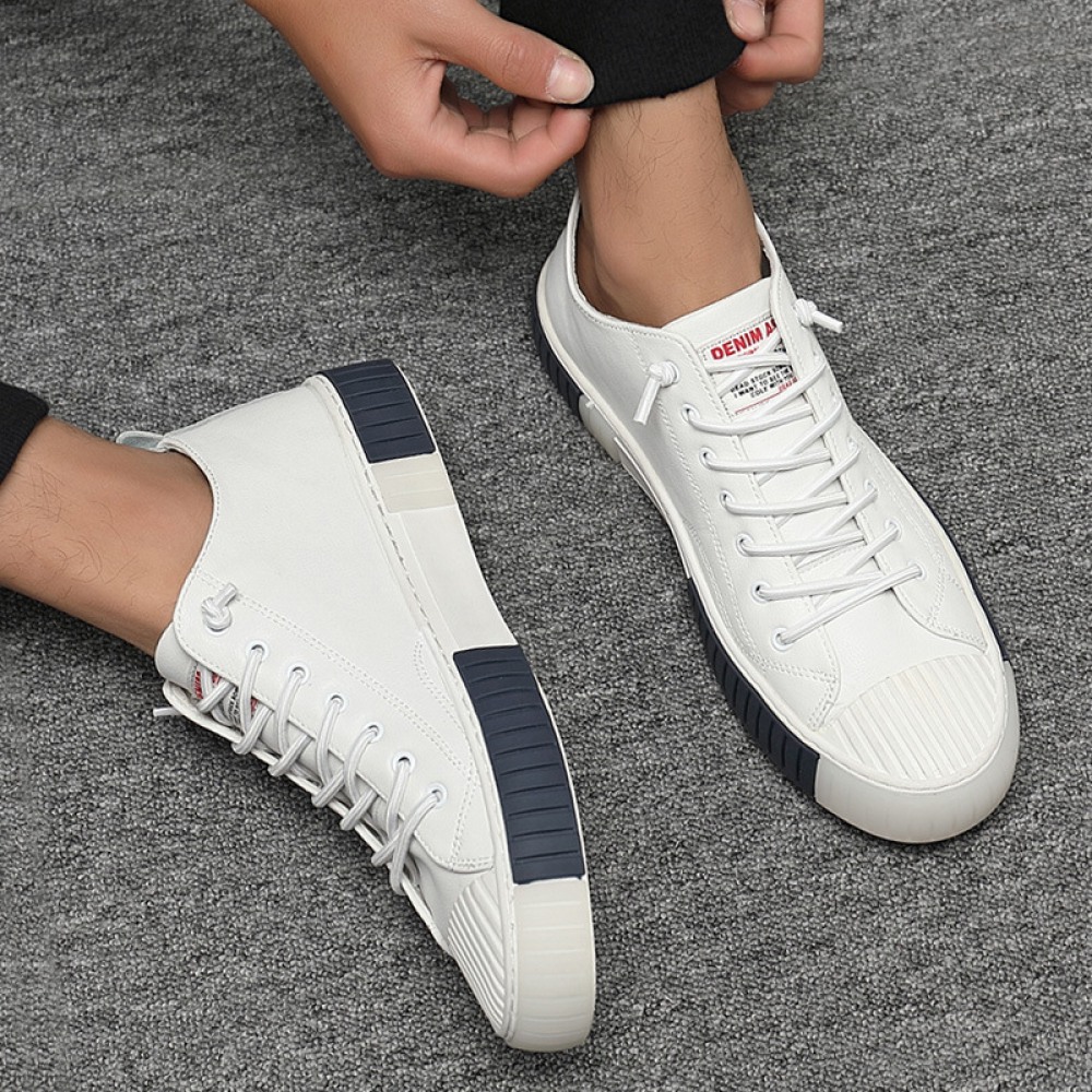 Summer New Fashion Men's Trendy White Sneakers Casual Leather Shoes