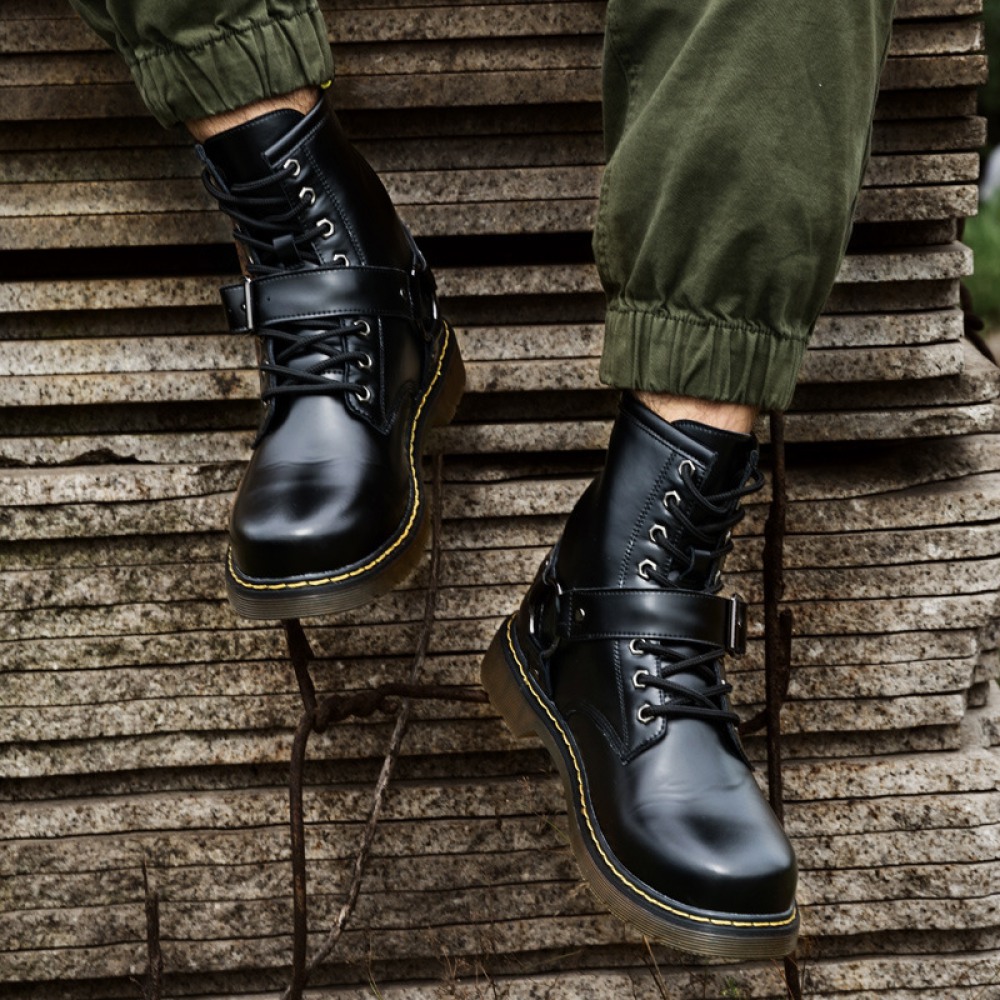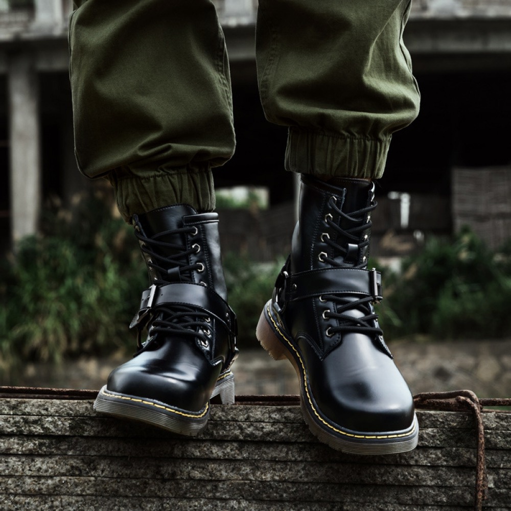 Big Head Leather Shoes Men's Trendy Snow Military Martin Boots