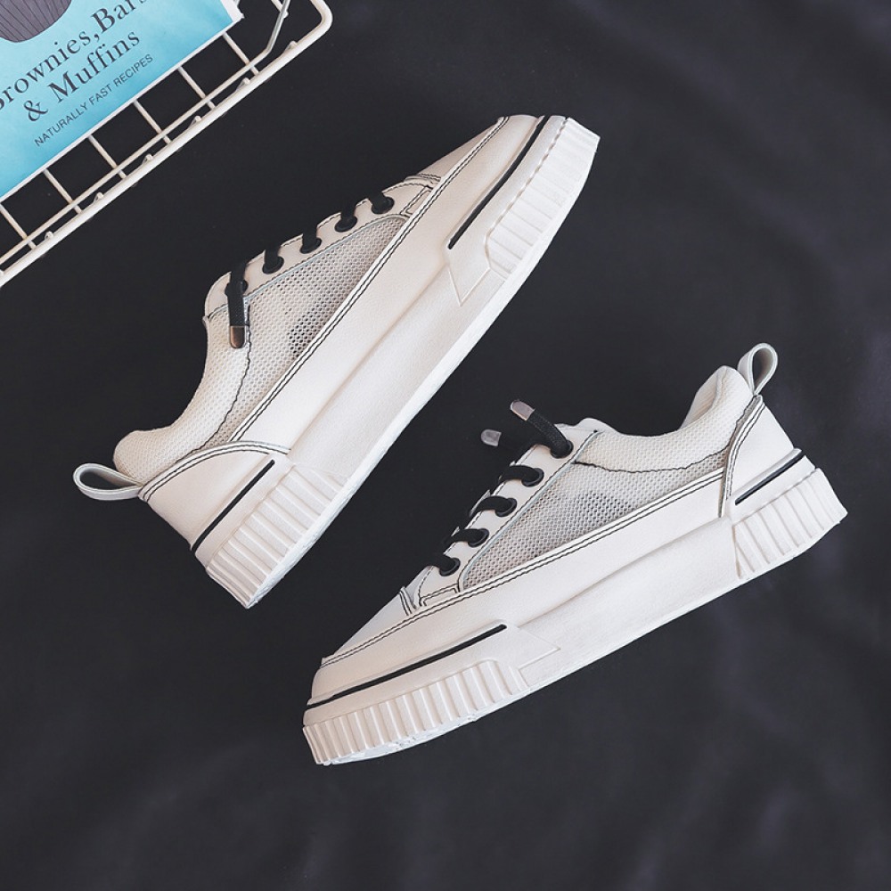 Spring New White Women's Breathable Running Board Shoes Heightened Casual Shoes